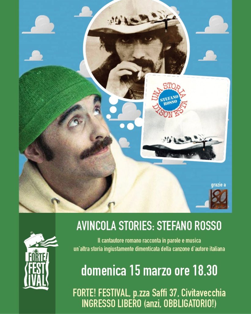Vi aspettiamo domenica 15 alle 18,30 nella sede di FORTE! Festival (piazza Saffi 37, Civitavecchia), non perdetevi l’occasione di risentire una storia e delle canzoni così belle e dimenticate… e di ascoltare soprattutto Simone che racconta e canta!!!
