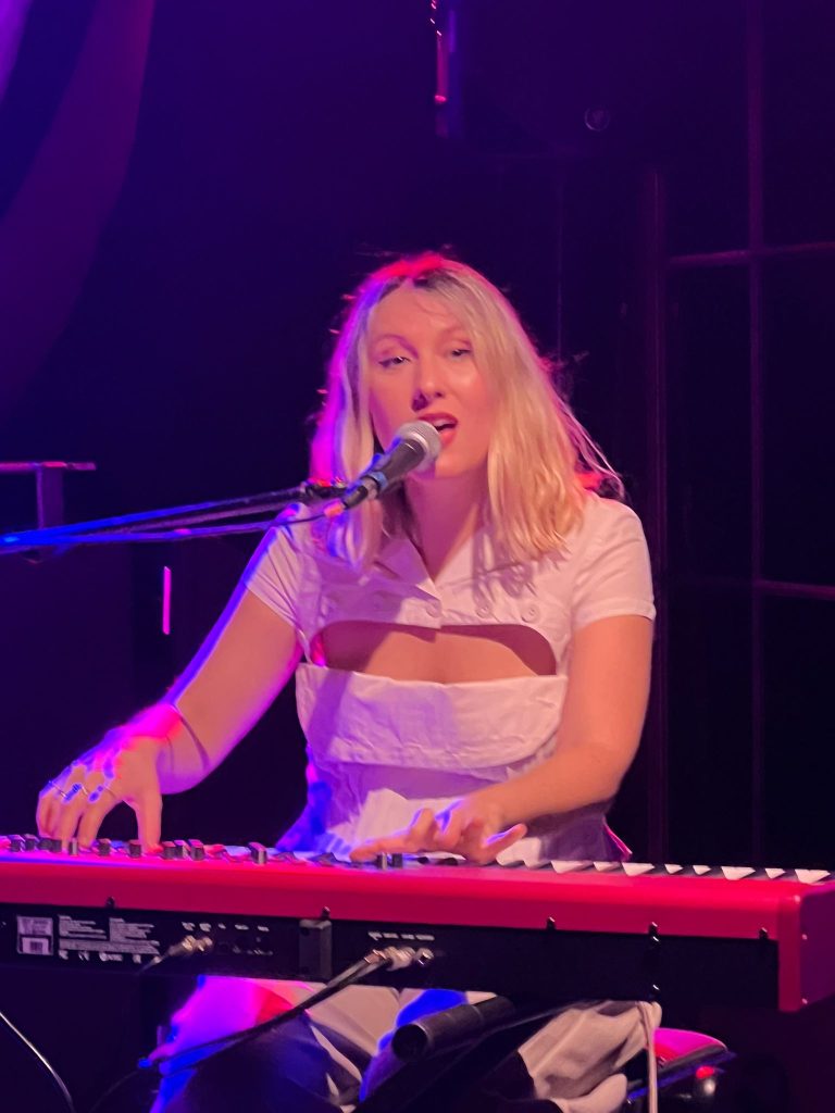 A seguire l’esibizione di Giulia Mei, palermitana DOC, oggi una delle voci più riconoscibili di una generazione che cerca nella musica autenticità e impegno. Nota per una scrittura profondamente legata al suo vissuto, affronta con lucidità temi sociali, la libertà femminile e le contraddizioni della contemporaneità, mantenendo uno stile diretto e personale. Sul palco del Madame Moustache, la sua presenza scenica autentica ha creato fin dalle prime note un legame diretto con gli spettatori. Il live si è sviluppato come un racconto intimo, in cui ogni brano contribuiva a costruire una narrazione coerente fatta di emozioni, ironia e riflessione. La formazione pianistica emerge chiaramente nella cura degli arrangiamenti e nell’uso espressivo dello strumento. La sua voce, limpida e carica di sfumature emotive, ha guidato il pubblico attraverso un repertorio che alterna introspezione e slanci più energici.