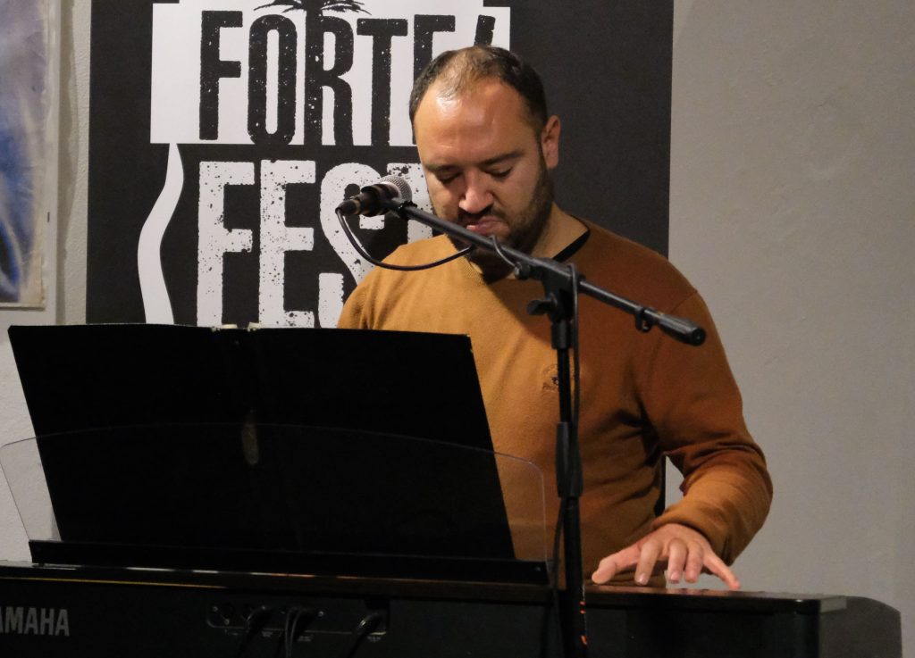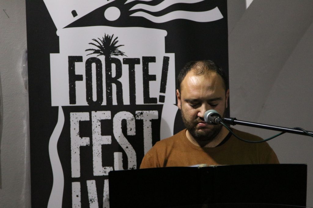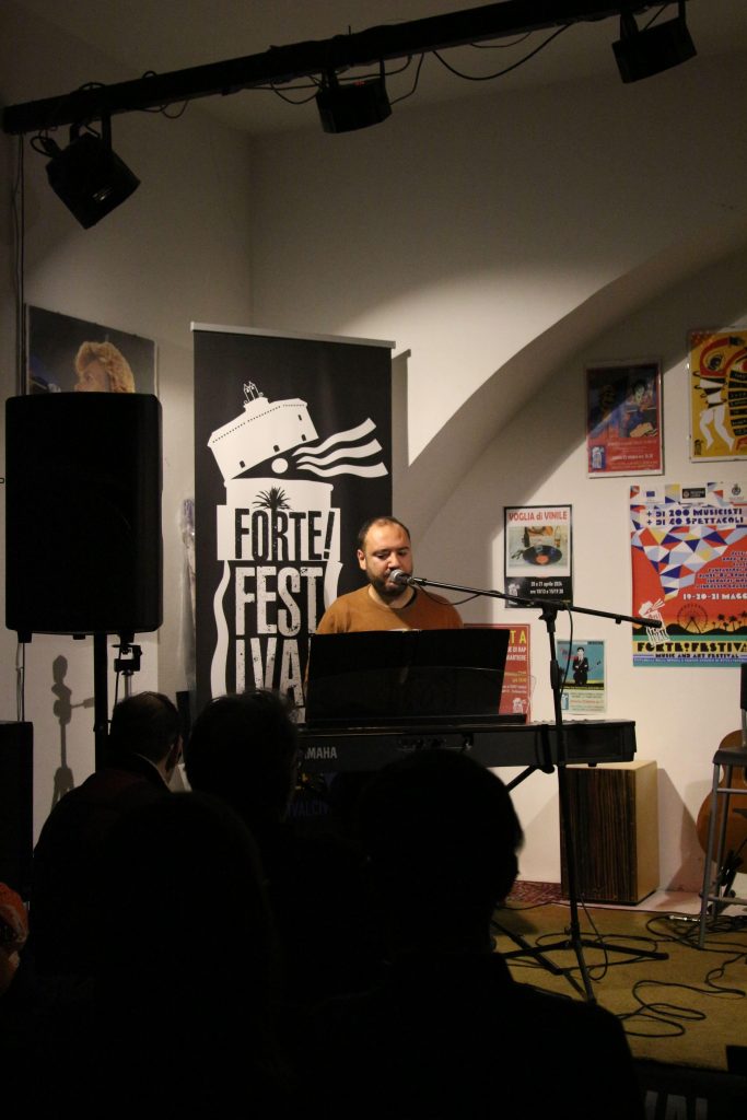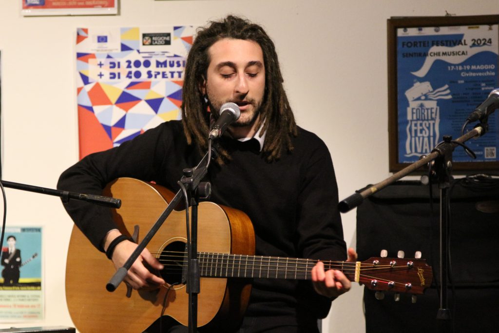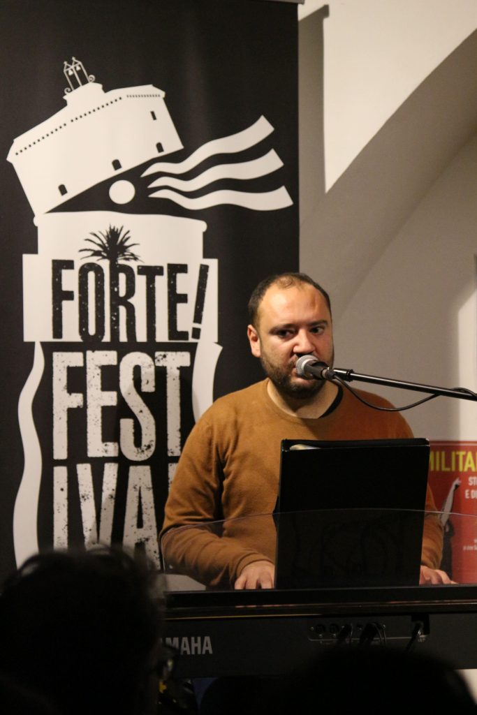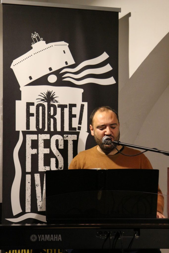 Domenica 7 dicembre Michele Mainardi, cantautore di Tarquinia, ha eseguito un concerto memorabile nella sede di FORTE! Festival a piazza Saffi. Luca Carrubba, con Gwenne ai cori, ha introdotto la performance con tre pezzi splendidi, terminando con la toccante Lancette d’argento, un brano carico di tenerezza che racconta il distacco di un ragazzo dal nonno, che ha coinvolto il pubblico in passaggi corali… ma che ha anche commosso tanti spettatori.
