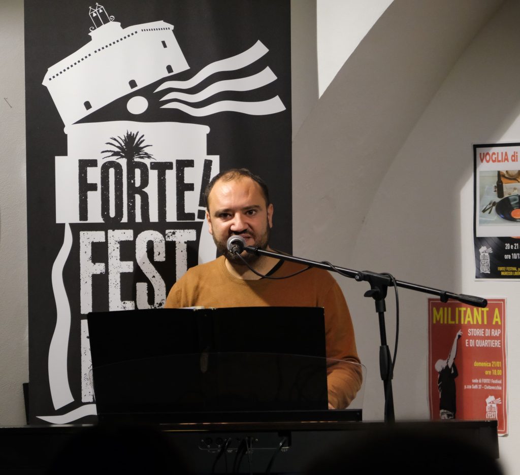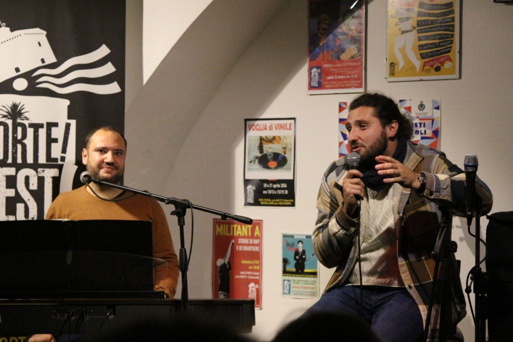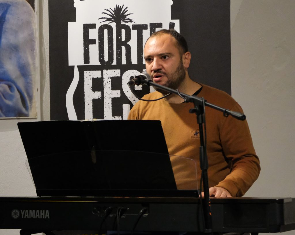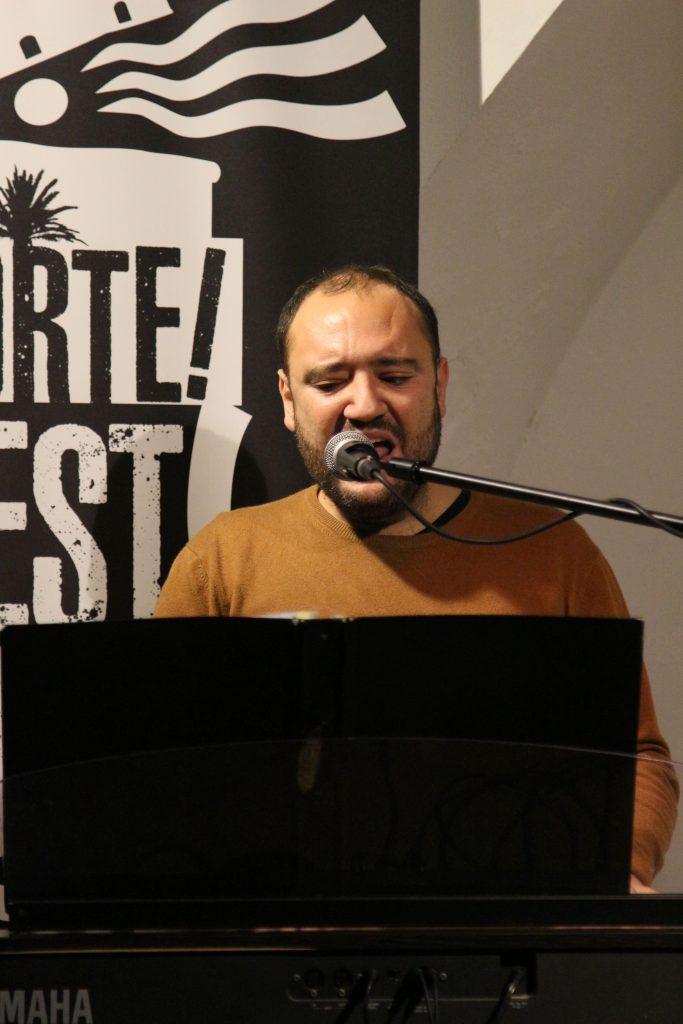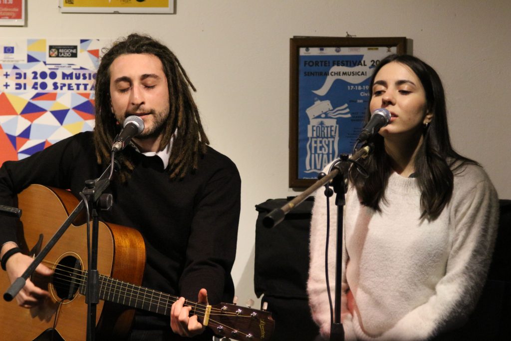 Domenica 7 dicembre Michele Mainardi, cantautore di Tarquinia, ha eseguito un concerto memorabile nella sede di FORTE! Festival a piazza Saffi. Luca Carrubba, con Gwenne ai cori, ha introdotto la performance con tre pezzi splendidi, terminando con la toccante Lancette d’argento, un brano carico di tenerezza che racconta il distacco di un ragazzo dal nonno, che ha coinvolto il pubblico in passaggi corali… ma che ha anche commosso tanti spettatori.