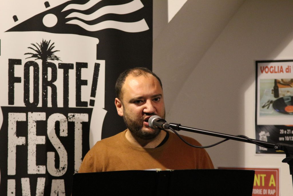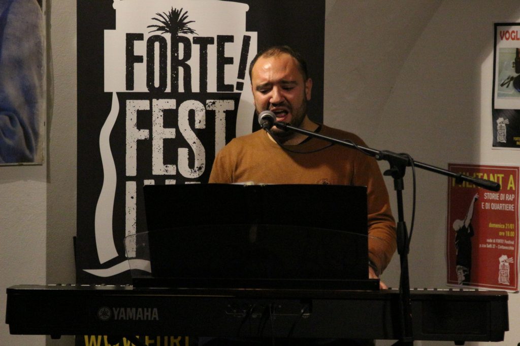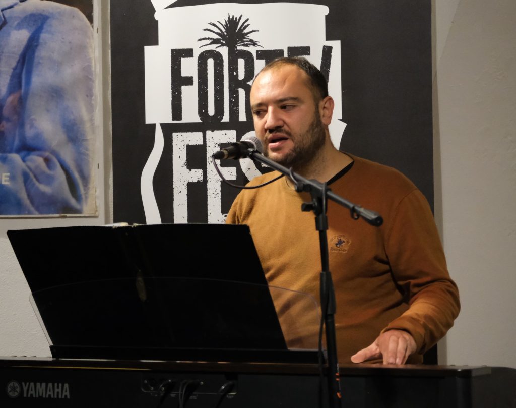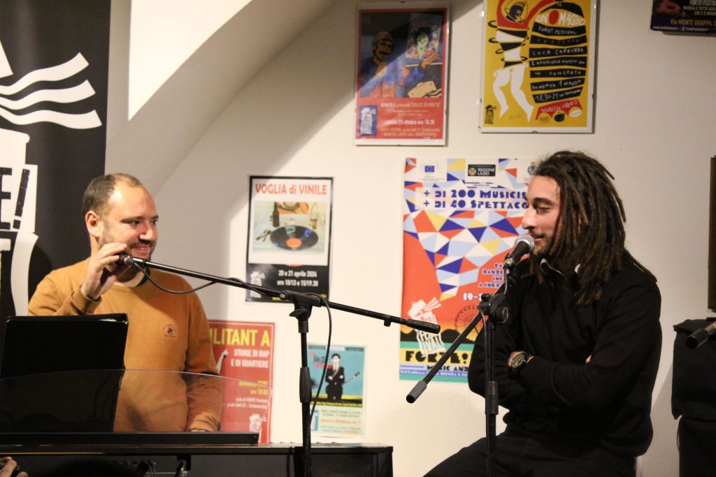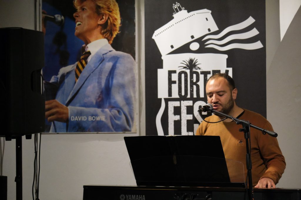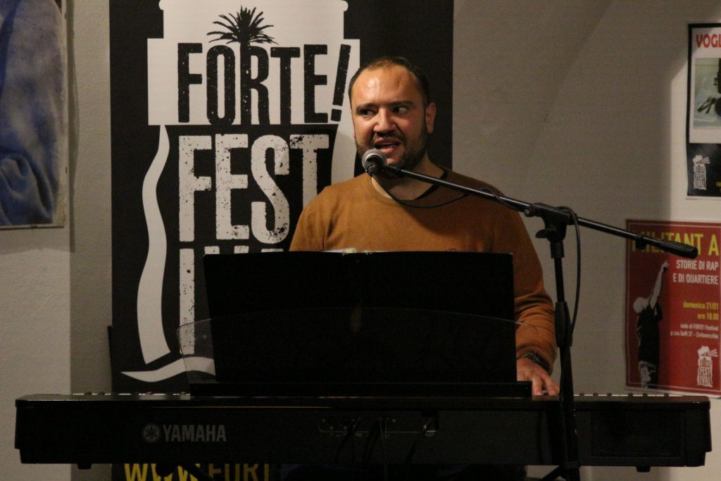 Domenica 7 dicembre Michele Mainardi, cantautore di Tarquinia, ha eseguito un concerto memorabile nella sede di FORTE! Festival a piazza Saffi. Luca Carrubba, con Gwenne ai cori, ha introdotto la performance con tre pezzi splendidi, terminando con la toccante Lancette d’argento, un brano carico di tenerezza che racconta il distacco di un ragazzo dal nonno, che ha coinvolto il pubblico in passaggi corali… ma che ha anche commosso tanti spettatori.