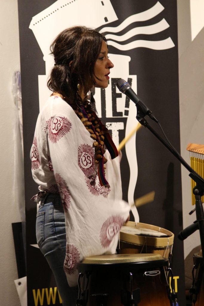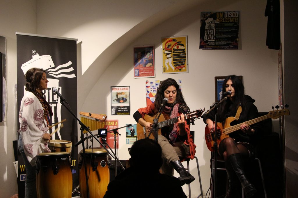 Cecilia Baliva, cantautrice, in perfetta sintonia con Chiara Bottazzi al basso e Chiara Mascarucci ai cori e alle percussioni, ha creato un atmosfera unica, fatta di ritmo, melodie, suoni perfettamente armonizzati a produrre un grande coinvolgimento nel pubblico. La musica faceva coesistere diverse sonorità, italiane, spagnole, sudamericane, molto fruibili e incisive.