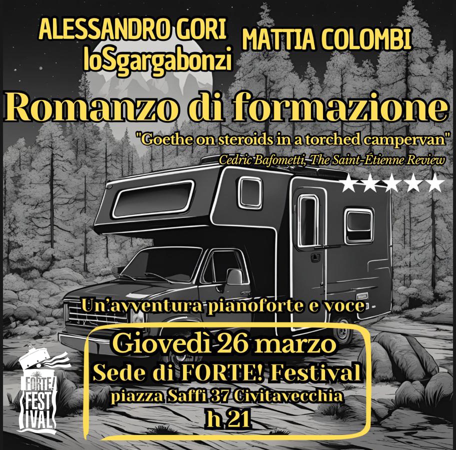Alessandro Gori, il “più grande scrittore comico italiano” secondo Internazionale, ci invita a seguirlo in uno stralunato viaggio alla scoperta di sé stessi, sulle ruote di un camper sgangherato. A bordo con lui il pianista genovese Mattia Colombi, che suonerà dal vivo suite musicali composte ad hoc per accompagnare il pubblico in un inedito spettacolo di stampo teatrale: “Romanzo di formazione“.